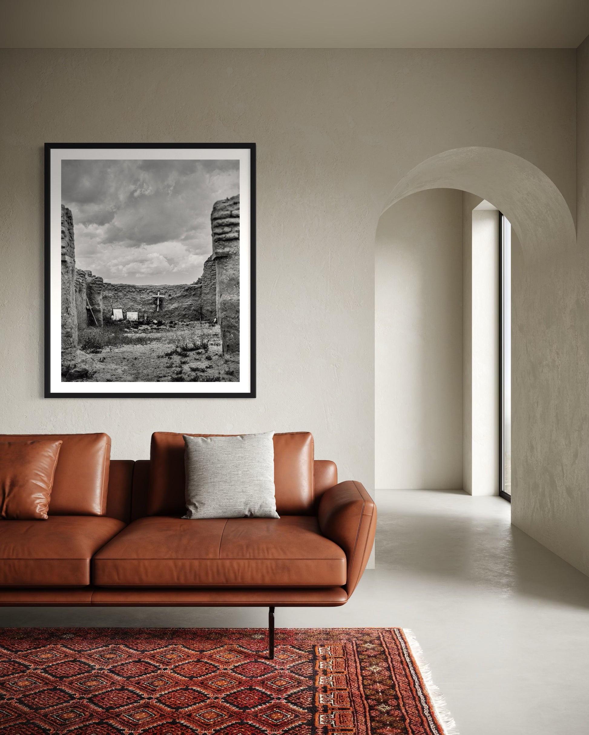 Sunlight falls softly on the remains of a Spanish mission church near Abiquiú, New Mexico, its weathered adobe walls a quiet echo of centuries past. This image captures the grace of sacred architecture shaped by time, earth, and faith.