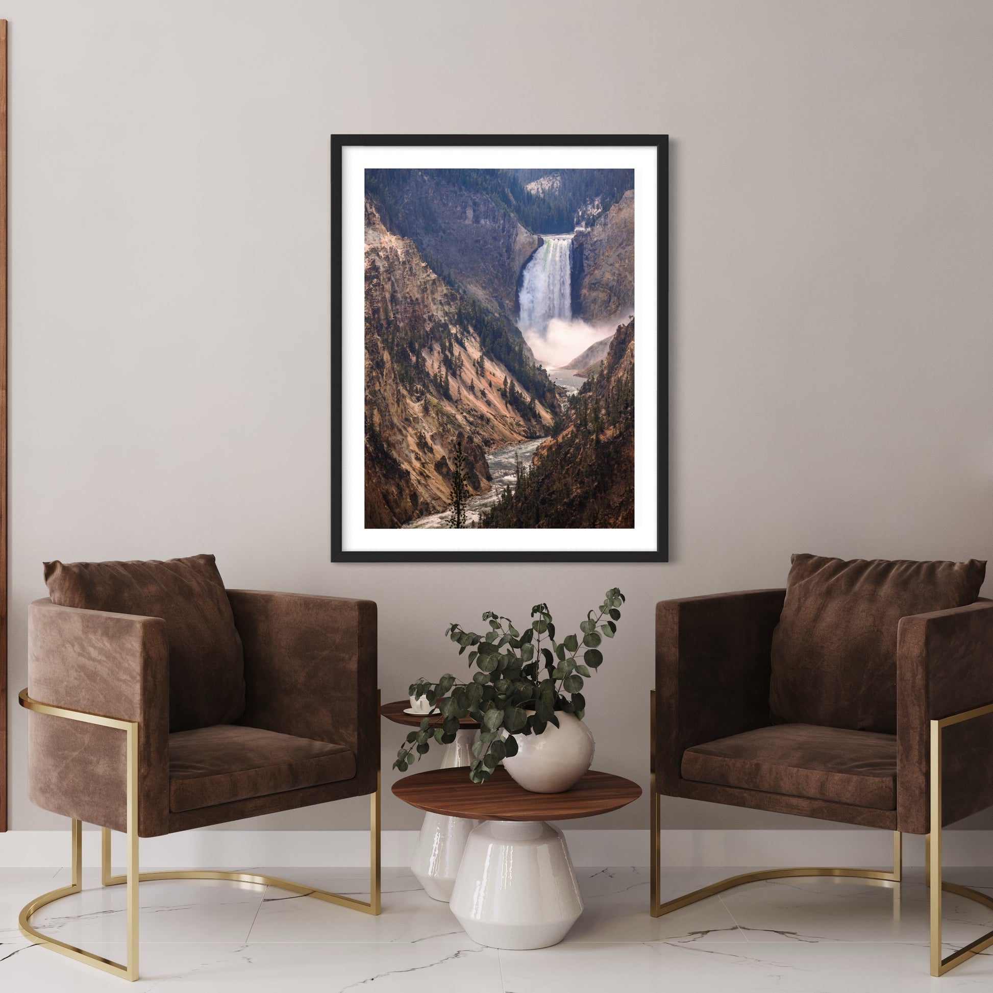 Upper Yellowstone Falls is one of the most recognized scenes in America’s oldest national park. This image was captured from Artist Point on a summer afternoon, hundreds of feet above the Yellowstone River passing below. Framed and acrylic prints arrive ready to hang.